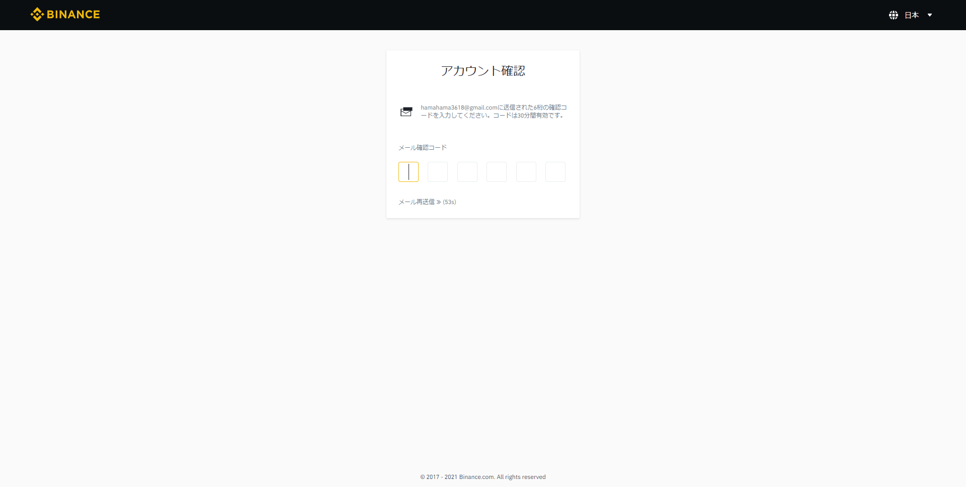 STEP.2で入力したメールアドレスに確認コードが届くので届いたコードを入力してください。
