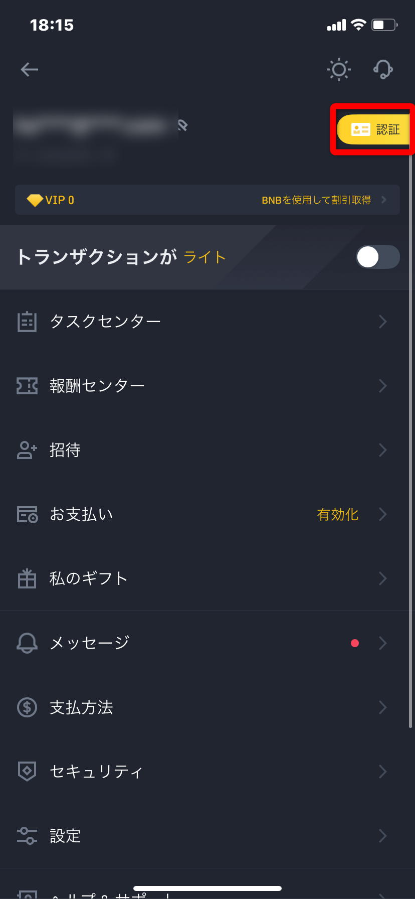 画像のようにメニューを開いたら赤枠の認証をタッチ